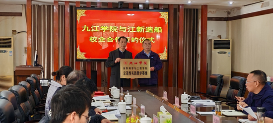 在江西江新造船有限公司,董事长代其国、总经理刘道艳及企业代表对材料学院一行的到来表示热烈的欢迎,举行了校企合作座谈会暨签约授牌仪式。